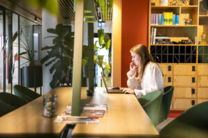 Onze werk- en ontmoetingsplek straalt uit wie wij zijn: een jonge, dynamische adviesorganisatie met enthousiaste en betrokken medewerkers. We juichen samenkomen en samenwerken toe. Daarom kies je iedere dag een eigen flexwerkplek, afhankelijk van je werkzaamheden die dag. Activiteitgericht werken noemen we dat. Meer informatie daarover lees je hier. Zo maak je jezelf snel wegwijs en leer je makkelijk al je collega’s kennen.